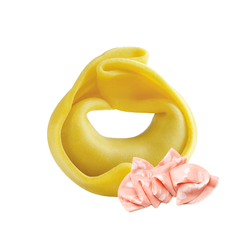 Zutaten des Teiges (70%): Hartweizengrieß, pasteurisiertes Vollei 20%. Zutaten der Füllung (30%): Paniermehl (Weizenmehl, Hefe, Salz), Mortadella 15,1% (60% Schweinefleisch, Wasser, Kartoffelstärke, Dextrose, Aromen, Gewürze, Geschmacksverstärker: Mononatriumglutamat, Antioxidationsmittel: Natriumisoascorbat, Konservierungsstoff: Natriumnitrit), Molke, Salz, Sonnenblumenöl, geriebener Käse (Milch, Salz, Lab, Konservierungsstoff: Lysozym aus Ei), Salz, Gewürze, Aromen, Konservierungsstoff: Kaliumsorbat, Säureregulator: Citronensäure